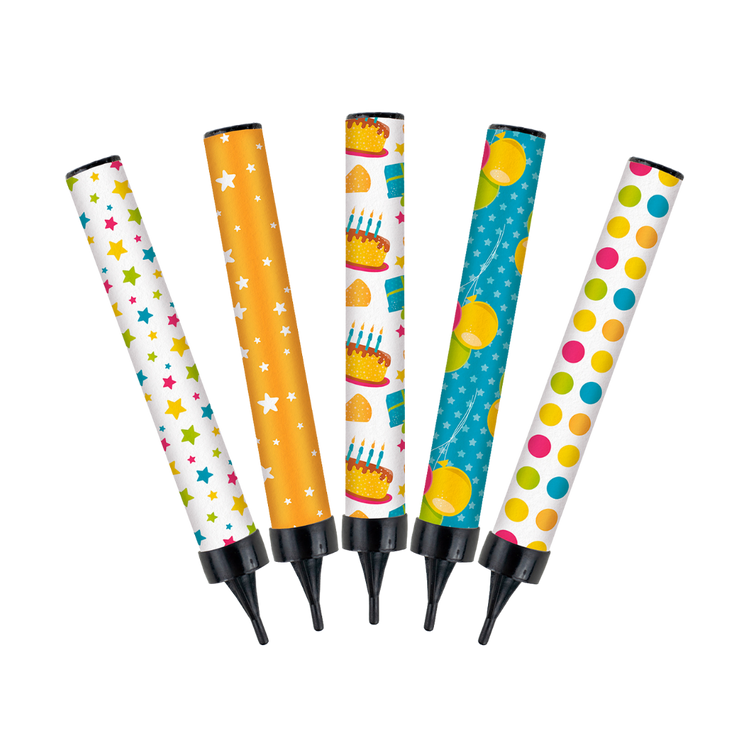 Dale un toque mágico a tus eventos con nuestras velas modelo Fiesta de chispa fría. Seguras, sofisticadas y perfectas para interiores o exteriores, iluminan sin riesgo.