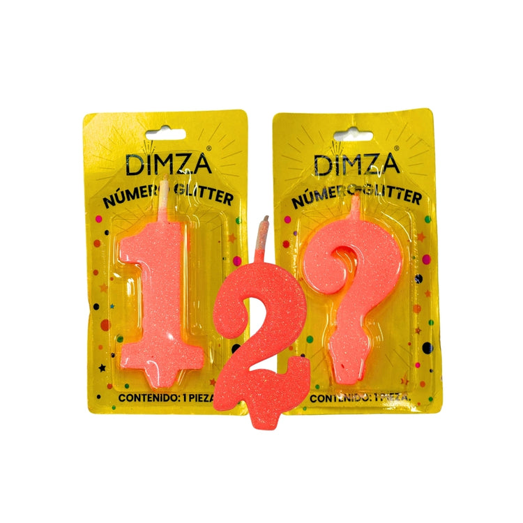 Vela de número para pastel color naranja glitter