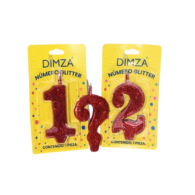 Vela de número para pastel color rojo glitter