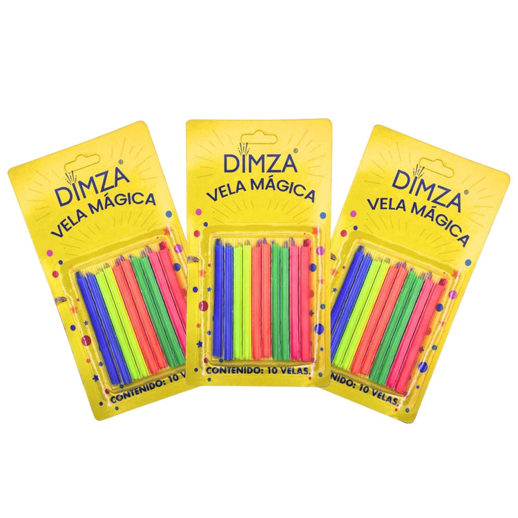 Velas Mágicas Dimza, diseñadas para encenderse nuevamente después de apagarse, creando un efecto único y divertido. Perfectas para darle vida y magia a cualquier celebración.